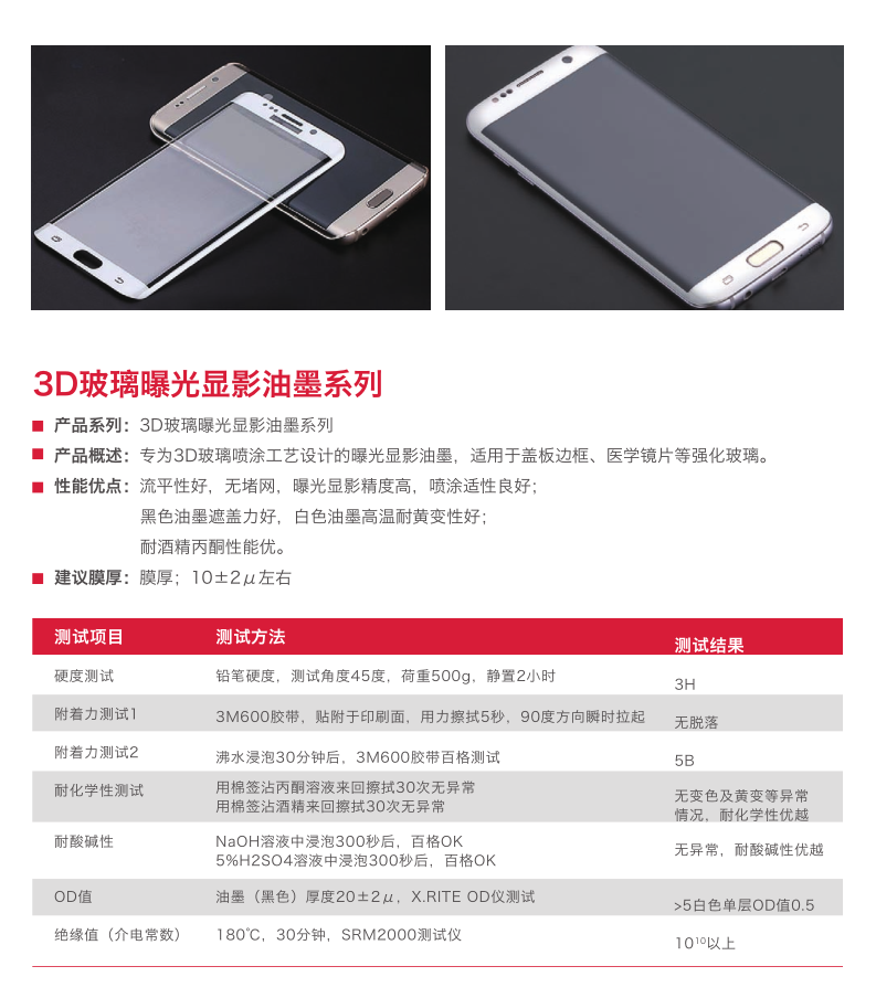 產(chǎn)品簡(jiǎn)介:3D玻璃曝光顯影邊框油墨